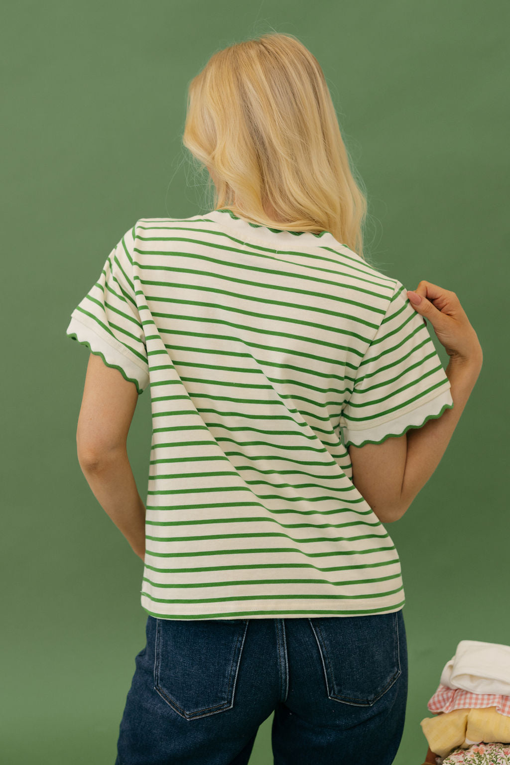 Mindi Top – Ivory/Green is a charming piece that brings together playful detail and everyday comfort. With perfectly scalloped edges and a fresh ivory and green color combination, this top adds a sweet, polished touch to any outfit.
