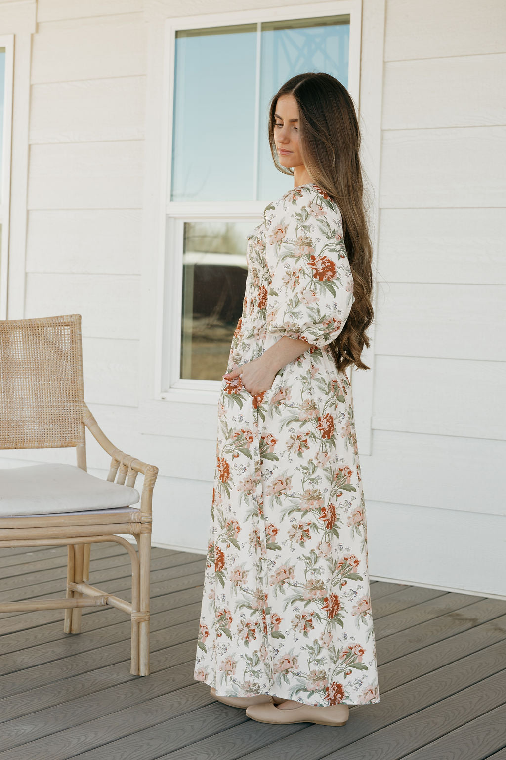 • Flattering maxi length with graceful movement