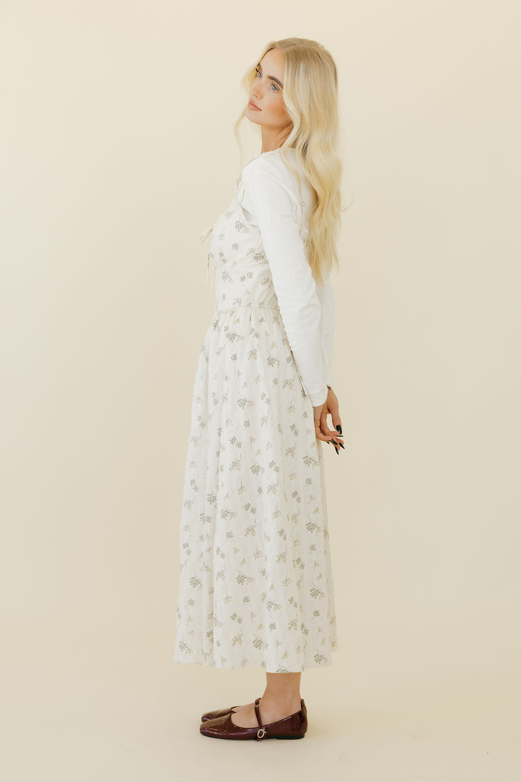Shirley Dress – Cream Multi is a soft, romantic silhouette designed with delicate detail and effortless charm. Featuring a subtle floral print on a creamy base, this midi dress feels timeless and feminine.